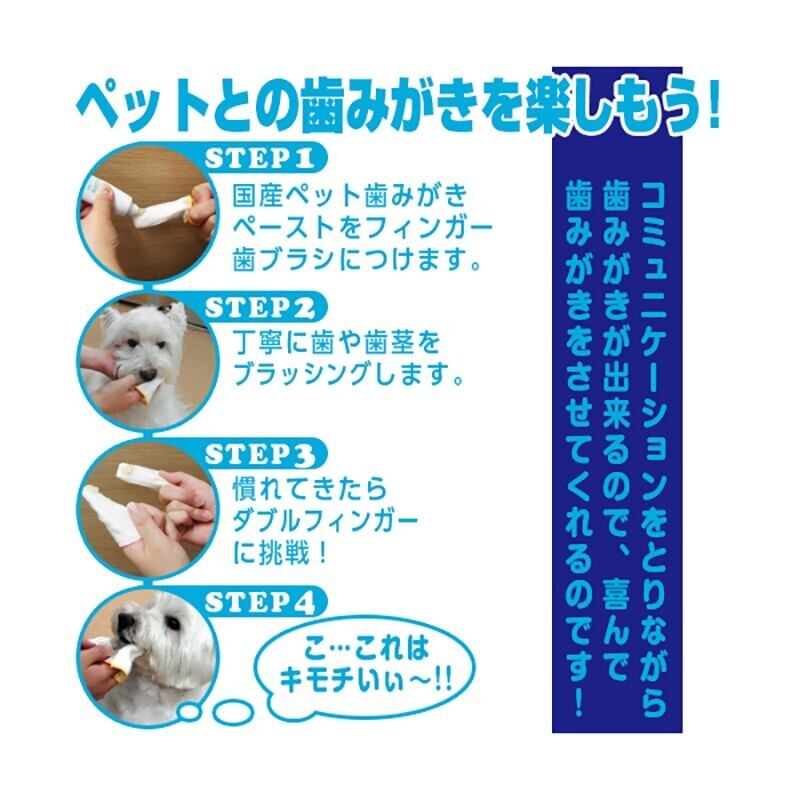 ペーストを指に適量指に取り、歯茎の根元をこする様に歯みがきしてください